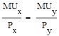 Равновесие потребителя достигается, как уже отмечалось выше, когда отношение предельной полезности отдельных товаров к их ценам выравниваются: