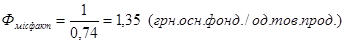 Розрахуємо плановий та фактичний показники фондомісткості: