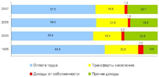 Одной из важнейших характеристик эффективности социальной политики является величина доходов населения, поэтому представляется необходимым рассмотреть это явление более подробно. Произведенный в экономике совокупный доход общества распределяется в соответствии с вкладом в его выработку всех факторов производства: труда, земли, капитала и предпринимательской способности. Такое распределение называется первичным (функциональным). Результатом его выступают факторные, или первичные, доходы, основными формами которых являются: заработная плата, предпринимательская прибыль, процент и рента. Их размеры зависят от конкурентных условий.