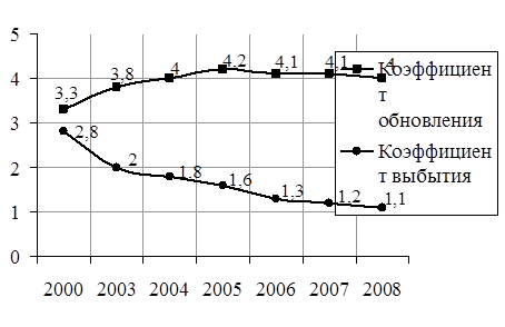 На рисунке 1.3 приведем динамику коэффициентов обновления и выбытия основных фондов.