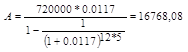 Имеем: стоимость аннуитета FV=720000 руб.; годовая процентная ставка i=14%;
