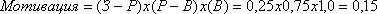 При этом, бригадир намекнул, что успешное выполнение задания может означать повышение, на которое сотрудник рассчитывал несколько лет. Поэтому валентность им оценивается очень высоко 1,0. Но бригадир не сказал, что повышение – вопрос решенный. Поэтому ожидание Р-В может составлять 0,75.