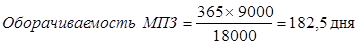 Ответ: Оборачиваемость запасов в 1996 году была 182,5 дня.