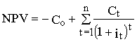 где NPV – чистая настоящая стоимость инвестиционного проекта; Со – начальные инвестиции; Сi