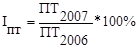 По формуле (1), рассчитаем, соотношение между ростом производительности труда и средней заработной платой работающих фактически по сравнению с 2006 годом: