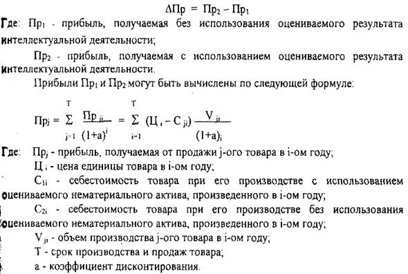 где: П П - дополнительная прибыль (до налогообложения), получаемая предприятием в результате реализации товара или оказании услуг по сравнению с предприятиями, производящими аналогичную продукцию - товар или оказывающие аналогичные услуги, но не обладающие оцениваемым объектом.