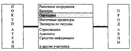 Инфраструктуру рынка имущества предприятий формирует деятельность целого ряда предпринимателей, целью которых является обеспечение сделок между покупателем и продавцом, которую можно представить следующим образом.