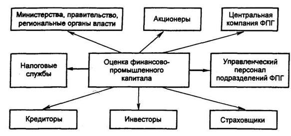 Можно выделить юридических и физических лиц, которые могут быть заинтересованы в проведении оценочных работ капитала той или иной финансово-промышленной группы (рис. 9.1).