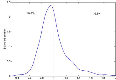 Возвращаясь к результатам рис. 1.1 и 1.2 можно заметить контраст между распределением, представленном на этих рисунках, и средним СЗВ, который получится, используя агрегированные данные (табл. 1.2). Например, можно увидеть, что средний литр молока в 2005 г. был произведен в Беларуси при СЗВ, равных 0.91. Этот средний результат, взятый сам по себе, показывает, что в Беларуси нет проблем с конкурентоспособностью молочного производства, затемняя тот факт, что почти 40% всех хозяйств, производящих молоко и 27% всего молочного производства в стране являются неконкурентоспособным. Это подтверждает недостатки политики, основанной на средних, и основные преимущества дисагрегированного распределения СЗВ, представленного здесь.