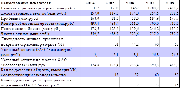 Размер собственных средств основного общества ОАО “Росгоcстрах” составил на начало 2008 года 372,2 млн. рублей. Суммарный объем собственных средств в целом по системе ОАО “Росгоcстрах” достиг 700 млн. руб.
