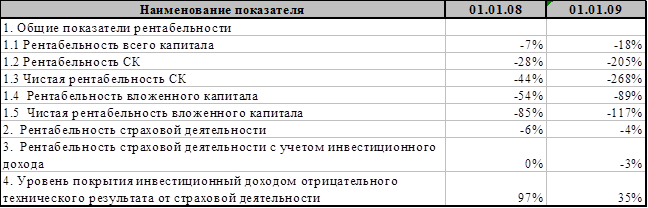 Уровень покрытия инвестиционным доходом отрицательного результата от страховой деятельности также уменьшился с 97% в 2007 году до 35% в 2008 году.