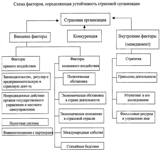 При оценке финансовой устойчивости страховой организации следует иметь в виду, что она определяется большим числом взаимосвязанных между собой факторов. Это вытекает прежде всего, из того, что деятельность страховщика состоит их нескольких элементов: непосредственного проведения страховых операций, инвестирования финансовых ресурсов, осуществления прочих, обычных для любого субъекта хозяйствования функций (расчеты с бюджетом и внебюджетными фондами, банками и пр.)