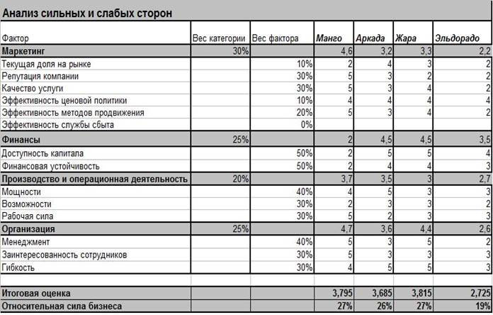 Рис 2.1. Результаты анализа сильных и слабых сторон