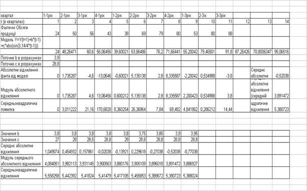 Статистичний аналіз відповідності моделі та фактичних значень хронологічного ряду виконувався за мінімізацією двох показників :