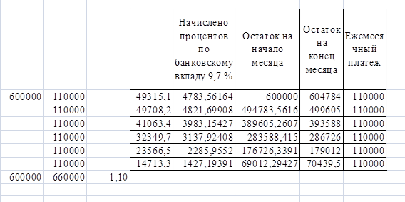 Вам предлагают два варианта оплаты за торговую площадь: заплатить сразу 600000 руб. или вносить по 110000 руб. в конце каждого следующего месяца в течении полугода. Вы могли бы обеспечить вложениями 9,7% годовых. Какой вариант предпочтительнее?
