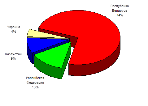 Как видно из диаграммы на рис. 3, экспорт продукции предприятия составляет 26%. Однако предприятие планирует увеличивать объемы экспортных поставок, чему способствует маркетинговая политика предприятия, направленная на сохранение достигнутых позиций на рынке и дальнейшее завоевание новых рынков сбыта путем установления оптимального соотношения цены и качества выпускаемой продукции.