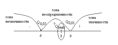 Рис 1. ось значимости для критерии Q Разенбаума