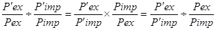 P'ex, Pex – новые и прежние уровни цен по экспорту;