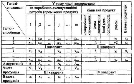Для поєднання вартісної структури суспільного продукту з його натурально-речовинною структурою розробляють таблицю МГБ, що складається з чотирьох квадрантів (табл. 1).