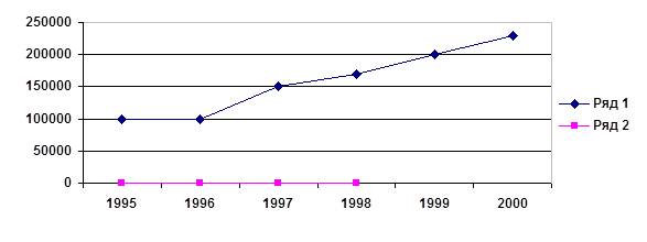 Рисунок 3.3. – График роста количества малых предприятий в Украине с 1995 до 2000 года(31,205)