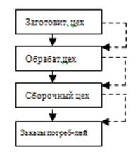При разработке производственной программы на машиностроительных предприятиях важным моментом является согласование объемов и сроков выпуска по стадиям и циклам производства. Для решения этой проблемы в планировании применяют цепной метод, т.е. производственные планы отдельных подразделений составляются в порядке, обратном ходу технологического процесса.