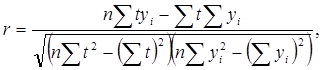 - значение параметра t в i-м периоде; t - среднее значение t.