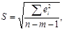 - остаток у в i-м периоде, определяемый как разница между фактическим и расчетным значениями показателя у за данный период; n - число уровней динамического ряда; m - количество независимых переменных в модели (для однофакторной регрессии m=1).