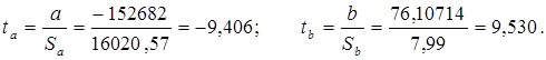 - расчетное значение t-статистики для параметра b; а, b - параметры функции; Sa