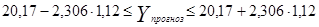 Зная точечную оценку прогнозируемого явления, определяют вероятностные границы интервала прогнозируемого явления:
