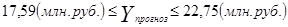 Вывод. С вероятностью 95% можно сказать, что в 2003 году производство продукции промышленными предприятиями области составит не менее 17,59 млн. руб. и не более 22,75 млн. руб.