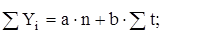Параметры а и b согласно методу наименьших квадратов находятся решением следующей системы нормальных уравнений, полученной путем алгебраического преобразования условий (4):