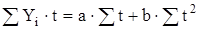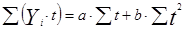 Преобразуем систему нормальных уравнений в следующий вид(т.к. ∑t=0):