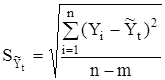 - остаточное среднее квадратическое отклонение от тренда, скорректированное по числу степеней свободы (n-m):