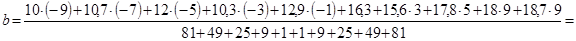 Найдём параметры a и b, решив систему нормальных уравнений, путём алгебраического преобразования: