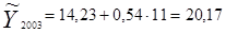 3.3. Используя метод экстраполяции, определить прогнозируемые объемы производства промышленной продукции в области в 2003 году с доверительной вероятностью 95%.