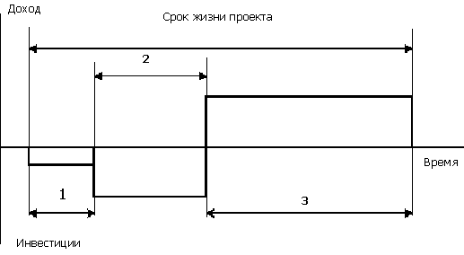(Обозначения: 1 - предынвестиционная фаза; 2 - инвестиционная фаза; 3 - эксплуатационная фаза)