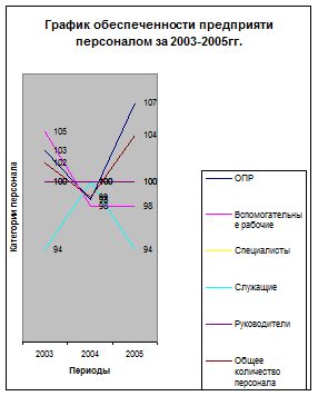 Вывод: из графика и таблицы мы видим, что производительность труда в 2005 году по отношению к 2003 году упала на 8%, возможно это связано с увеличением численности рабочих, так как выработка одного рабочего в 2005 году к 2003 году упала на 131 н-час/чел. Что подтверждают данные указанные в таблице №3.