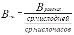 Аналогично определяется часовая (Вч) и дневная (Вдн) выработка на одного рабочего: Вч=ОПмес / Тчас; Вдн =ОПмес /Тд, где ОПмес - объем продукции за месяц (квартал, год); Тчас, Тдн - количество человеко-часов, человеко-дней (рабочего времени), отработанных всеми рабочими за месяц (квартал, год).
