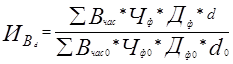 Расчет изменения показателя производительности труда осуществляется базисным методом по формуле 14.