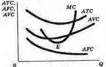 Динамика средних издержек представлена на рис. Как видно из графика, по мере увеличения объема выпуска продукции средние переменные издержки сначала снижаются, достигают своего минимума, а затем начинают расти (на графике это дугообразная кривая).
