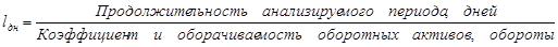 Другой показатель оборачиваемости оборотных активов - продолжительность одного оборота, в днях (lдн