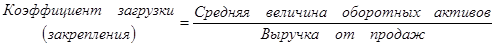 Для оценки динамики закрепления в 1 тенге выручки от продажи средней величины оборотных активов предлагается рассчитывать как минимум за два периода коэффициент загрузки (закрепления) оборотных активов: