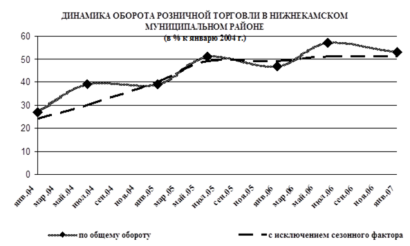 Приложение А Динамика оборота розничной торговли в нижнекамском муниципальном районе (в % к январю 2004 г.)
