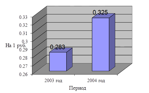 Численность работников на предприятии в 2004 году составила 812 человек и увеличилась по сравнению с предыдущим годом на 53 человека. Коэффициент оборота кадров по приему увеличился на 0,12. Этот факт свидетельствует о возможности роста затрат, связанных с обучением персонала и организации работ по приему.