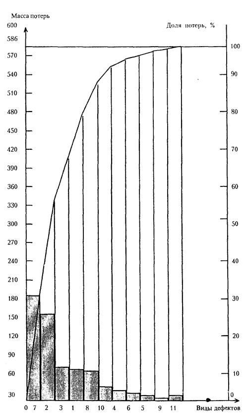 По доле дефекта (или потерь) выявляют наиболее существенные (группа А) и наиболее несущественные (группа С) причины брака и группу В, располагающуюся между группами А и С.