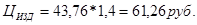 Для определения оптовой цены изделия к полной себестоимости следует прибавить сумму прибыли (40% от полной себестоимости).
