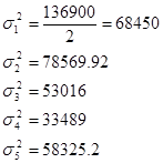 Подставляя данные из табл.7 в формулу (17), рассчитаем внутригрупповые дисперсии: