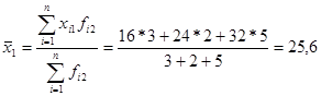 1) Найдем групповую среднюю по каждой группе рабочих: