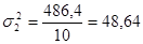 Таб. 1.2 Расчет дисперсии выработки во второй группе