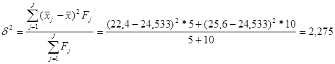 – дисперсию по каждой группе рабочих (групповые дисперсии)